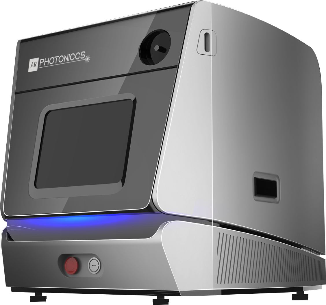 AR Photoniccs series surgical laser is a desktop device based on Holmium (Ho:YAG) laser with emission at 2100 nm wavelength. This wavelength is highly absorbed by water and biological tissue providing excellent cutting, ablation and hemostatic properties. The limited radiation penetration (0.3–0.4 mm) results in minimal damages to surrounding tissue.